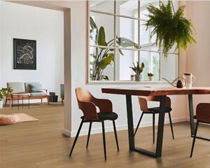 Además, nuestros suelos vinílicos PVC SpAquoEasy están diseñados para resistir el alto tránsito y la humedad, lo que los hace perfectos para todas las estancias interiores, incluyendo baños y cocinas, permitiendo un pavimento continuo y funcional en todo el espacio.